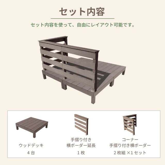 ◆組み立てに必要なビス・ボルト類は同梱しております。 ◆モニターの発色具合によって実際の商品と色味が異なる場合がございます。 ◆素材の性質上、開封直後は商品画像より白っぽく見えることがあります。 ◆商品寸法・重量は多少の誤差が発生いたしますが、安全・品質に問題がない限り、仕様とさせていただきます。 ◆当店の商品はすべて、店頭と同時販売を行っております。 迅速に在庫確認はしておりますが、タイムラグで売り切れとなり、お届けにお時間をいただく場合がございます。 ◆注意事項: アイウッド人工木商品は、弊社が独自に開発したオリジナル素材およびオリジナルカラーを使用しております。材質から色まで他社商品との互換性はありませんので、従って他社商品と一緒に使用する場合や商品画像の色と実際の商品色に違いがある場合、それを理由とした返品はお受けできません。材質と色についてご心配の方は、事前に弊社のアイウッド人工木カラーサンプルをご購入いただき、商品色をご確認の上でご購入ください。 日照の強い場所で使う場合は、気温により多少の伸縮や反りが発生する場合があります。ご理解のほど宜しく御願い致します。 |