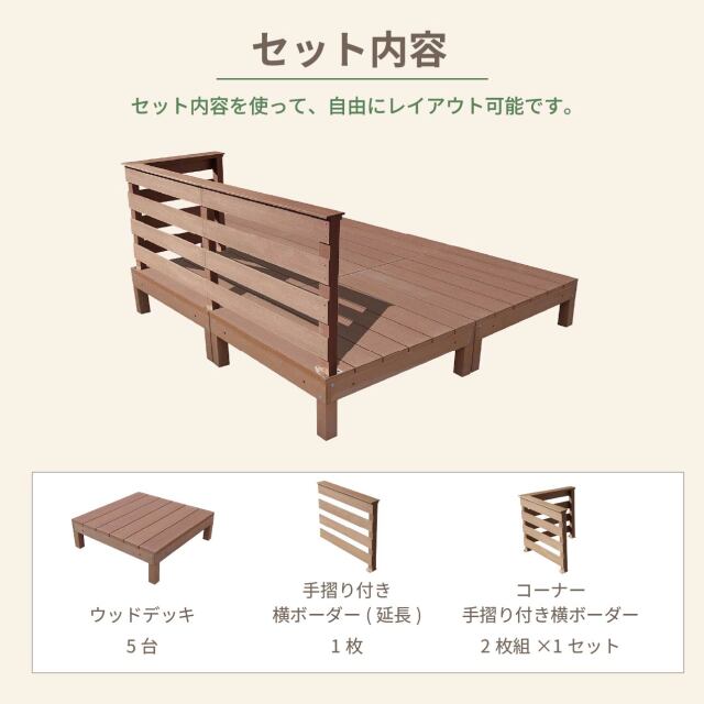 ◆組み立てに必要なビス・ボルト類は同梱しております。 ◆モニターの発色具合によって実際の商品と色味が異なる場合がございます。 ◆素材の性質上、開封直後は商品画像より白っぽく見えることがあります。 ◆商品寸法・重量は多少の誤差が発生いたしますが、安全・品質に問題がない限り、仕様とさせていただきます。 ◆当店の商品はすべて、店頭と同時販売を行っております。 迅速に在庫確認はしておりますが、タイムラグで売り切れとなり、お届けにお時間をいただく場合がございます。 ◆注意事項: アイウッド人工木商品は、弊社が独自に開発したオリジナル素材およびオリジナルカラーを使用しております。材質から色まで他社商品との互換性はありませんので、従って他社商品と一緒に使用する場合や商品画像の色と実際の商品色に違いがある場合、それを理由とした返品はお受けできません。材質と色についてご心配の方は、事前に弊社のアイウッド人工木カラーサンプルをご購入いただき、商品色をご確認の上でご購入ください。 日照の強い場所で使う場合は、気温により多少の伸縮や反りが発生する場合があります。ご理解のほど宜しく御願い致します。 |