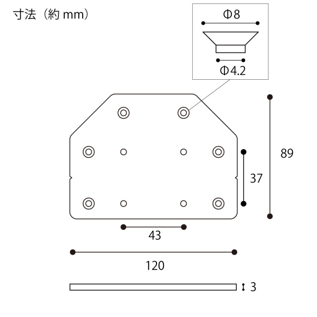 | 外寸法: | 幅120mm × 奥行89mm × 高さ3mm |