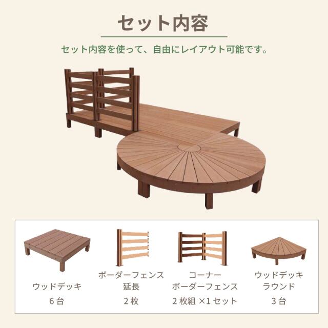 - アイウッド(iwood)デッキの耐荷重は、短時間で300kgまで耐えられるよう造られております。あまりにも重いものを長時間載せたままですと、たわみや割れの原因となりますのでご注意ください。