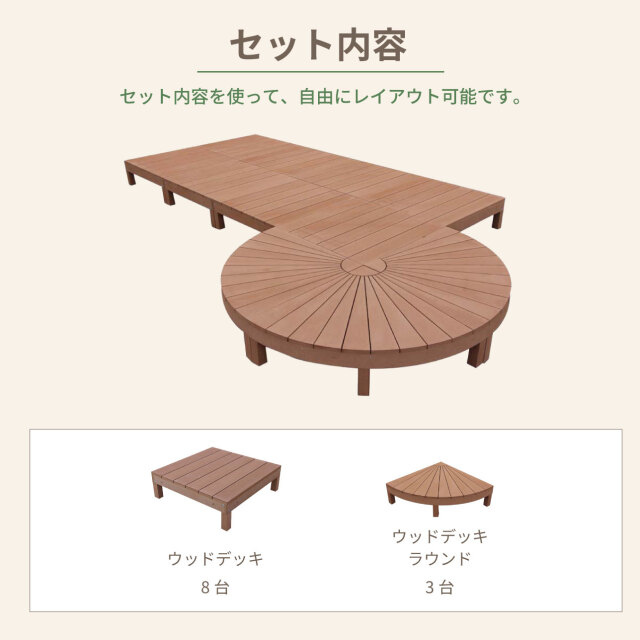 - アイウッド(iwood)デッキの耐荷重は、短時間で300kgまで耐えられるよう造られております。あまりにも重いものを長時間載せたままですと、たわみや割れの原因となりますのでご注意ください。