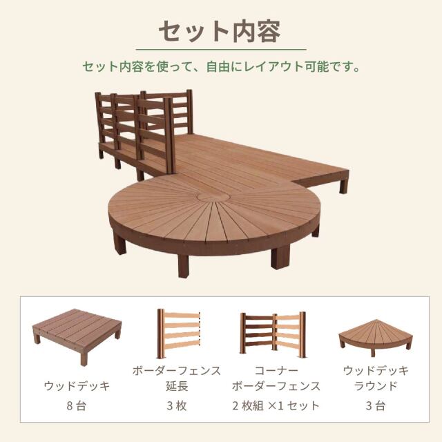 - アイウッド(iwood)デッキの耐荷重は、短時間で300kgまで耐えられるよう造られております。あまりにも重いものを長時間載せたままですと、たわみや割れの原因となりますのでご注意ください。
