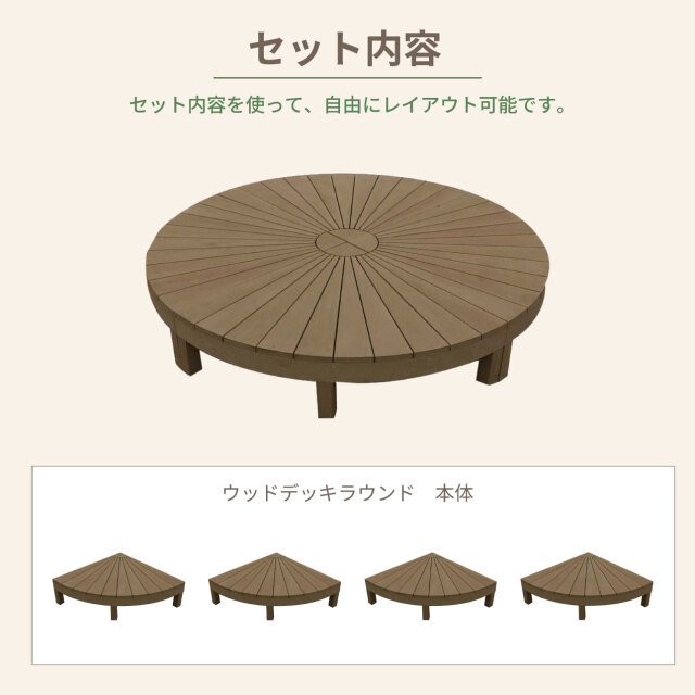 | 製品名: | アイウッドデッキ円形φ180 : 幅900×奥行900×高280 |