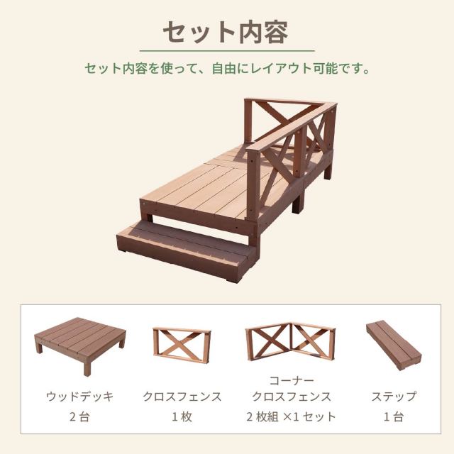 デッキ:幅1800×奥行900×高さ280 フェンス:幅900×奥行86×高さ450 ステップ:幅900×奥行265×高さ123 |
