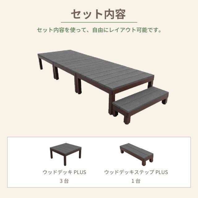 ウッドデッキPLUS 人工木+アルミ製 0.75坪 [4点セット] ブラック P3d1sPB アイウッドデッキPLUS ステップPLUSセット P90B