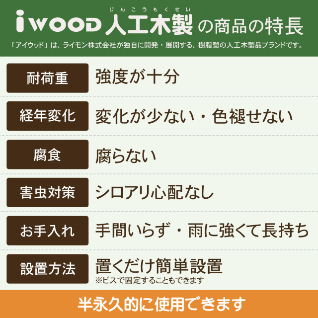 | 製品名: | アイウッド枕木風ウッドパネル 幅610 × 奥行305 × 高さ30 |