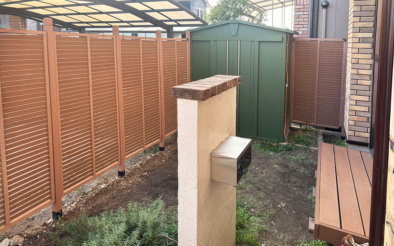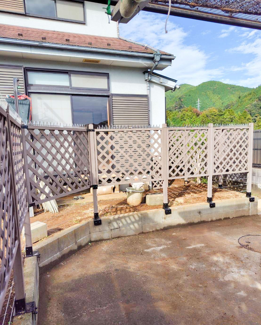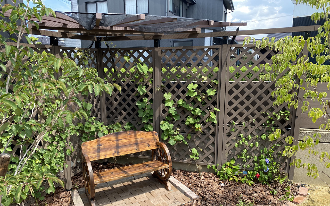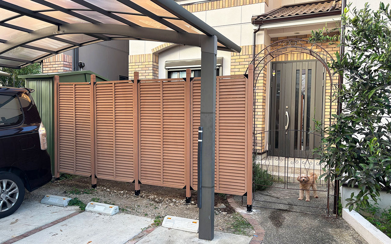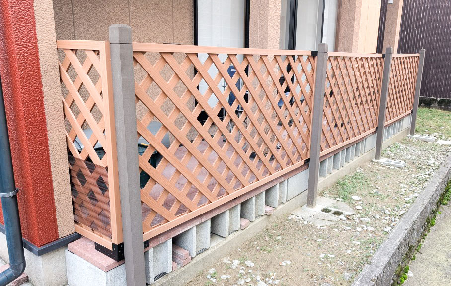 アイウッドルーバーラティス + ラティス用人工木柱 + ラティス柱設置金具