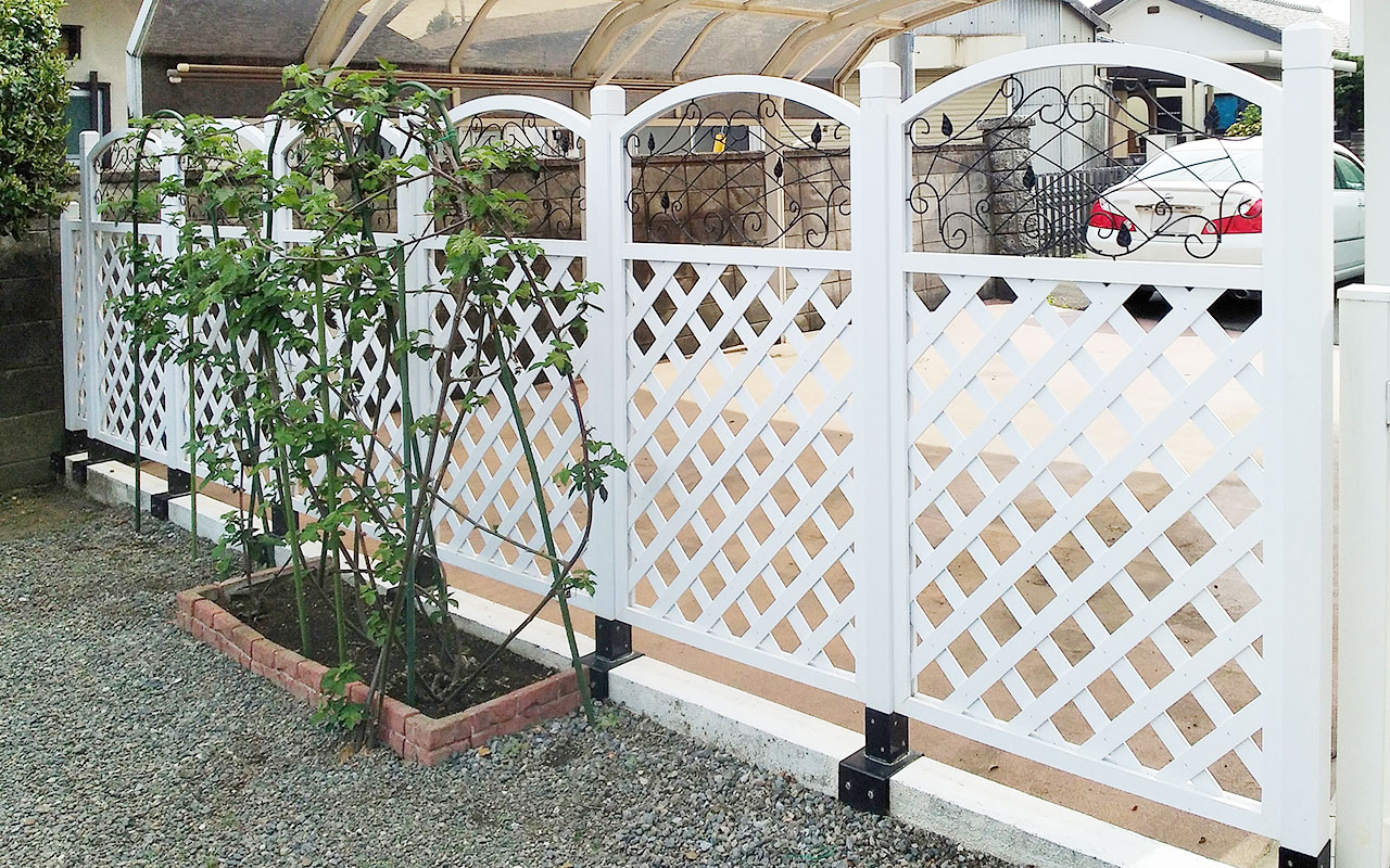 アイウッドアイアンラティス + ラティス用人工木柱 + ラティス柱設置金具